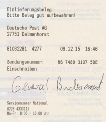 stelle ich hier den Einlieferungsbeleg des Einschreibens zur Ansicht ein. Do. 17.12.2015 9:00